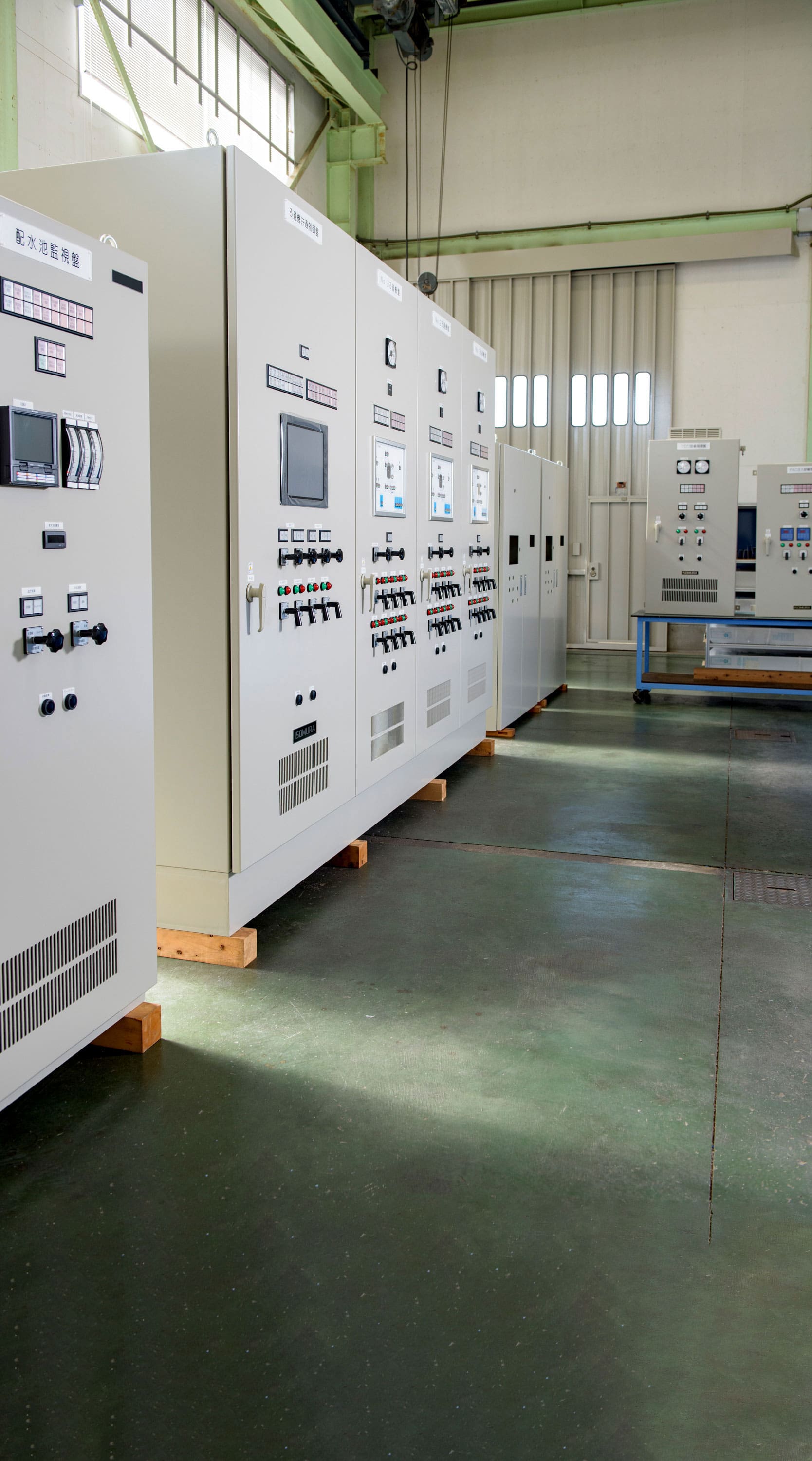 お客様のニーズに沿った自動制御システムをご提案させていただき、ハードウェア及びソフトウェアの設計を行っています。安全かつ信頼性の高い設計、美しい配線プランをご提案いたします。